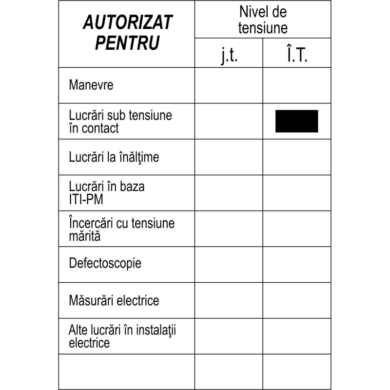 Document oficial emis de către autoritățile competente, cum ar fi ANRE (Autoritatea Națională de Reglementare în Domeniul Energiei, în România), care certifică nivelul de calificare și competență al unui electrician pentru a efectua lucrări specifice în domeniul instalațiilor electrice.