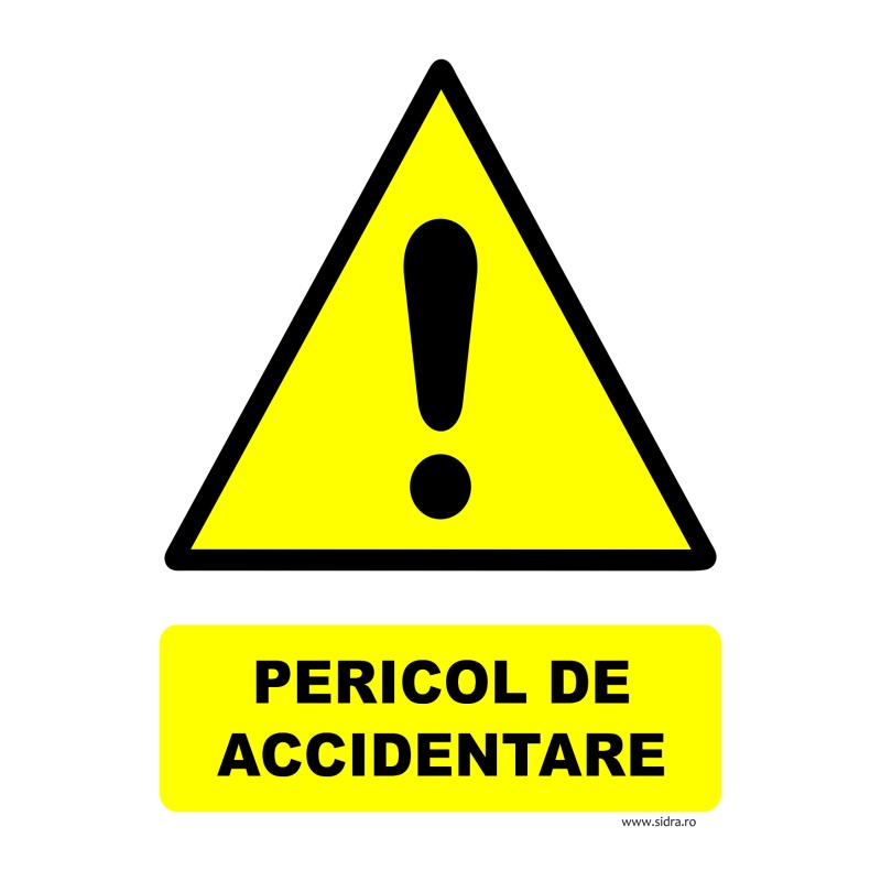 Indică faptul că, în zona marcată, există pericole care pot provoca accidentări, dacă nu sunt respectate măsurile de siguranță.