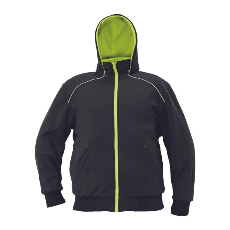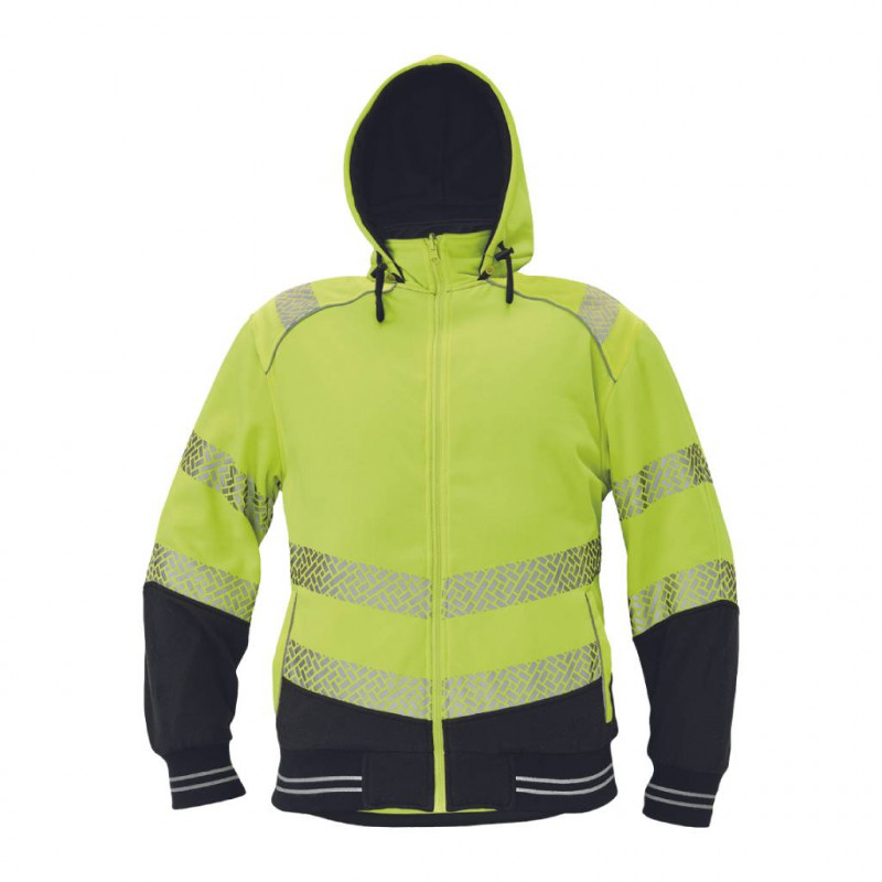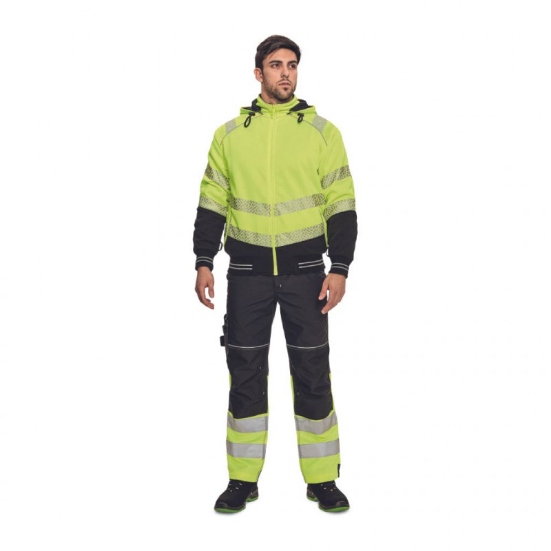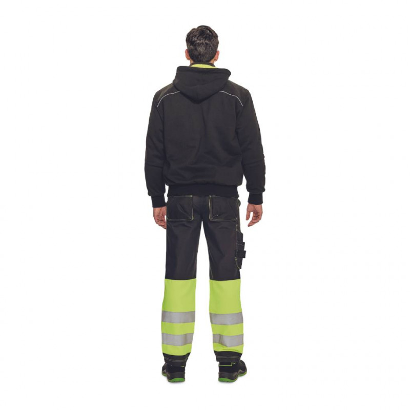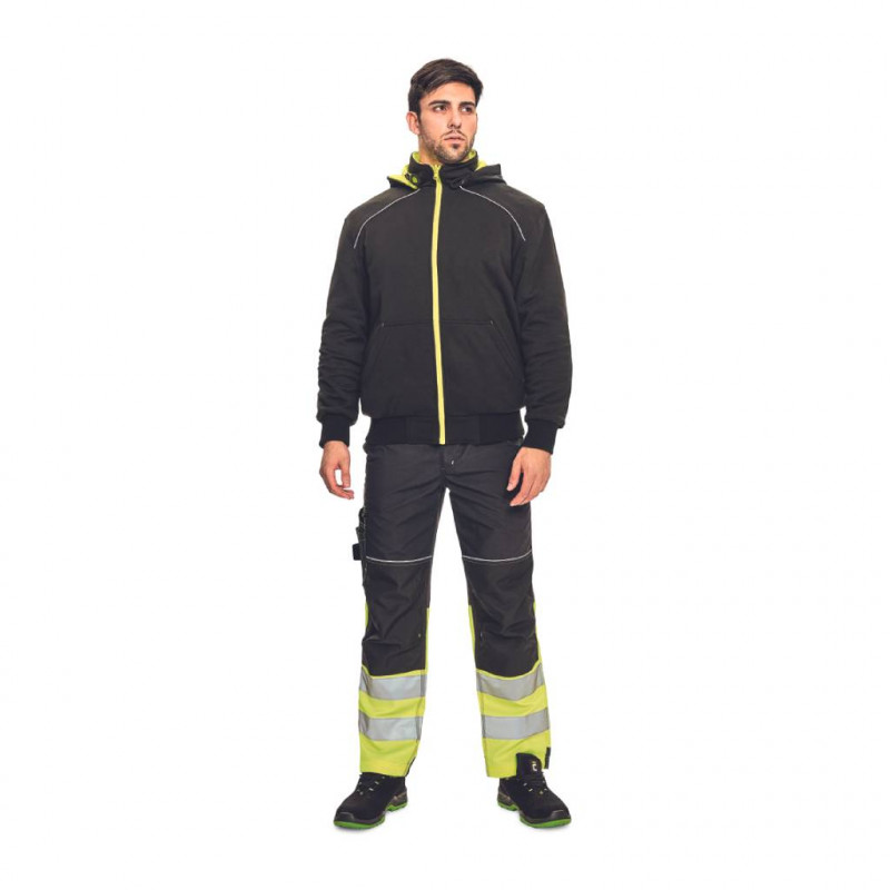 Jachetă de lucru KNOXFIELD PROFI HV, cu două fețe pentru bărbați, cu glugă detașabilă; versiune hi-vis cu vipușcă și benzi reflectorizante segmentate.