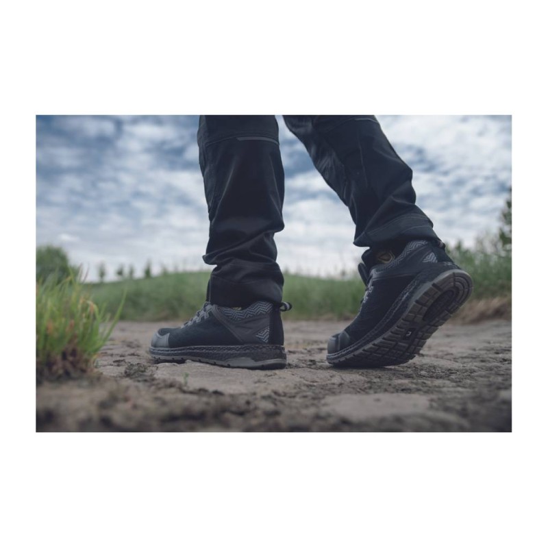 • Greutatea redusă a modelului LITEVAAG, obținută nu doar prin utilizarea bombeului de protecție din aluminiu și a tălpii intermediare antiperforație din material compozit, ci și datorită materialului textil respirabil din partea superioară