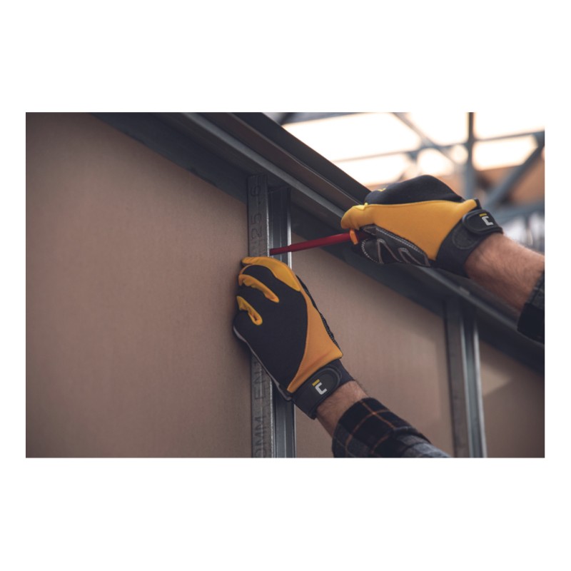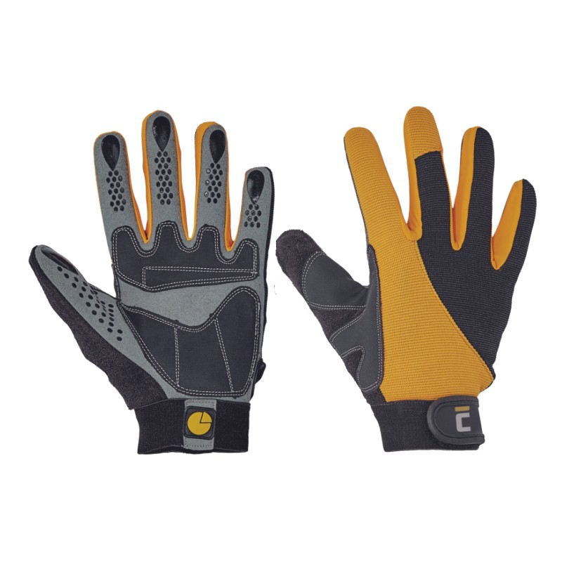 Degetele cu particule antiderapante, maniabilitate excelentă, suprafeţele de apucare de pe palmă întărite, pe lateralele degetelor ţesătură fină din nylon permiţând mobilitate uşoară, ajustarea manşetei cu Velcro.