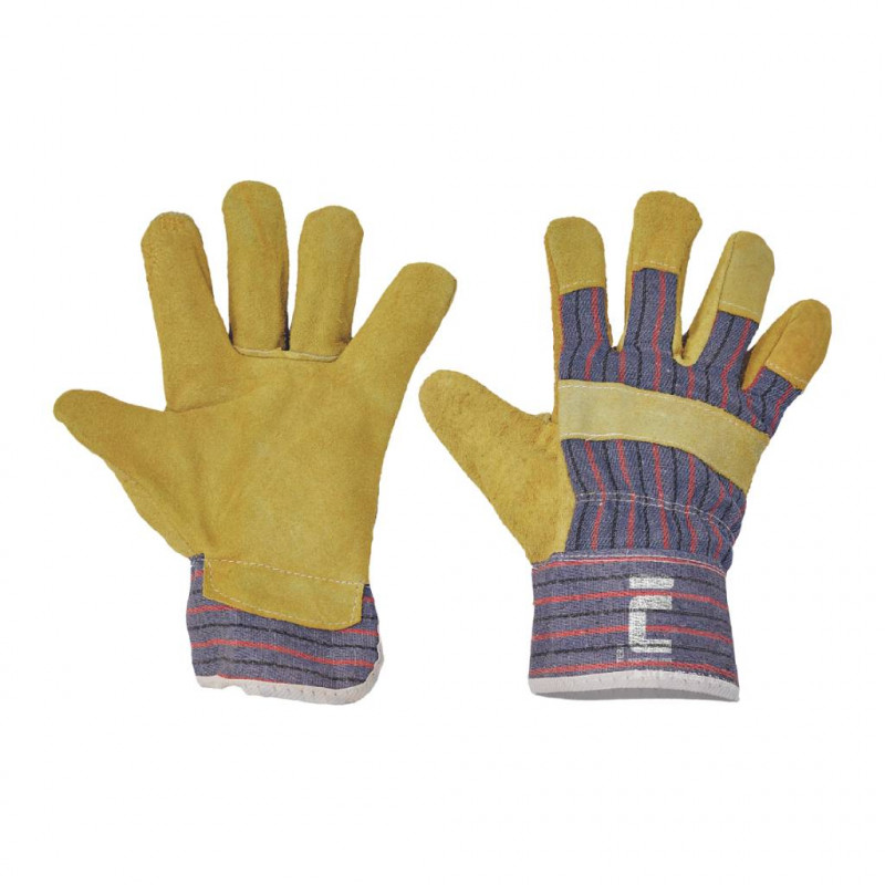 Căptuşite în palmă, cu ţesătură de bumbac dungat pe dosul palmei şi manşetă.