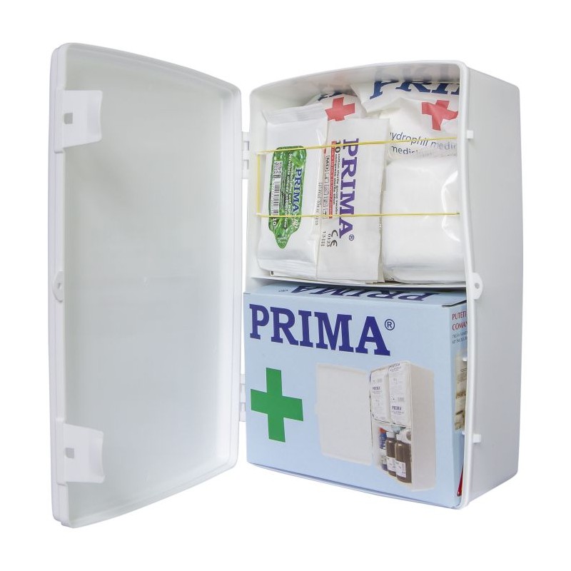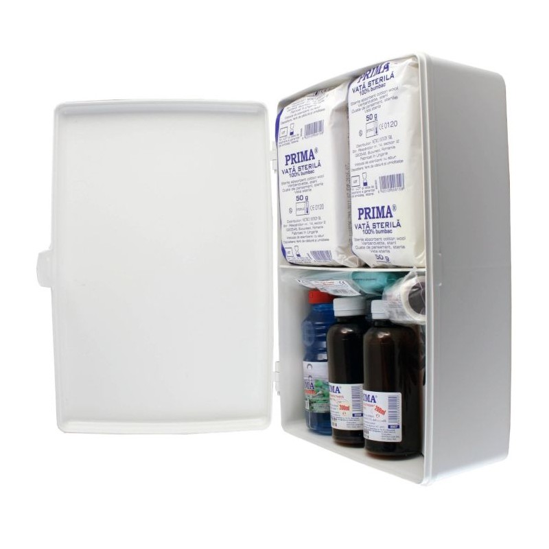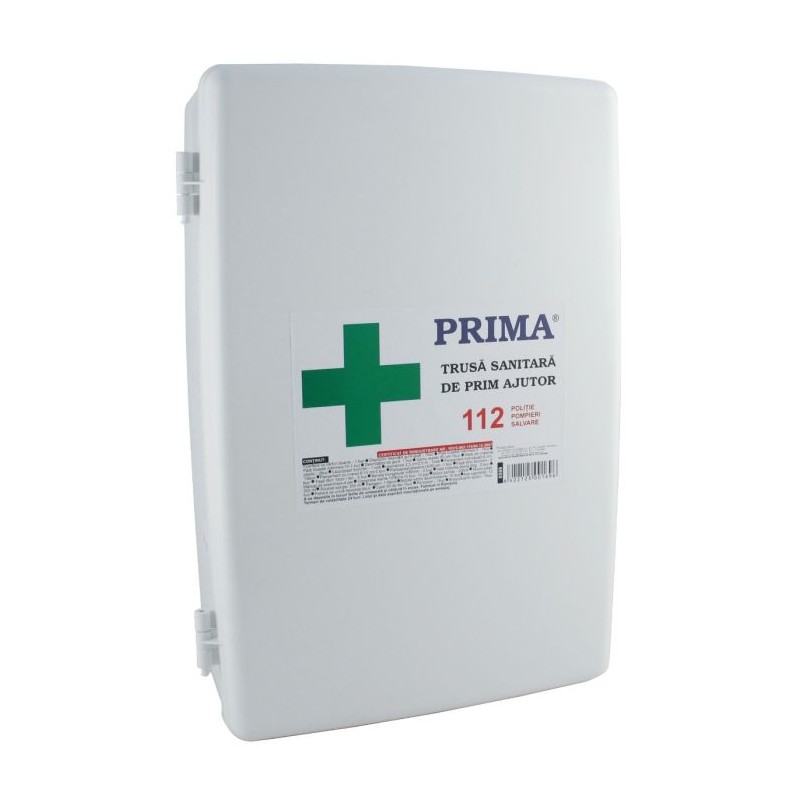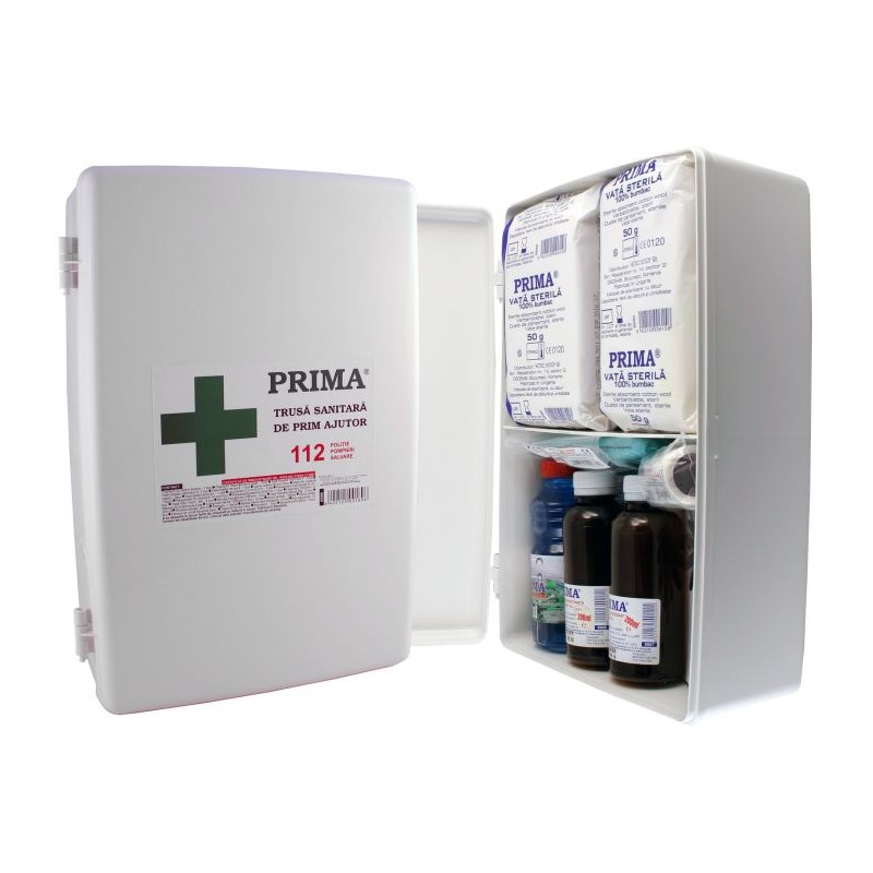 Trusa sanitara de prim ajutor nedetasabila pentru fixare pe perete este avizata MS, iar componentele sale sunt folosite pentru acordarea primului ajutor medical. Aceasta este obligatorie pentru toate institutiile si societatile comerciale. Trusa sanitara se compune dintr-o cutie din material plastic, cu colturi si muchii rotunjite, in care sunt depozitate: