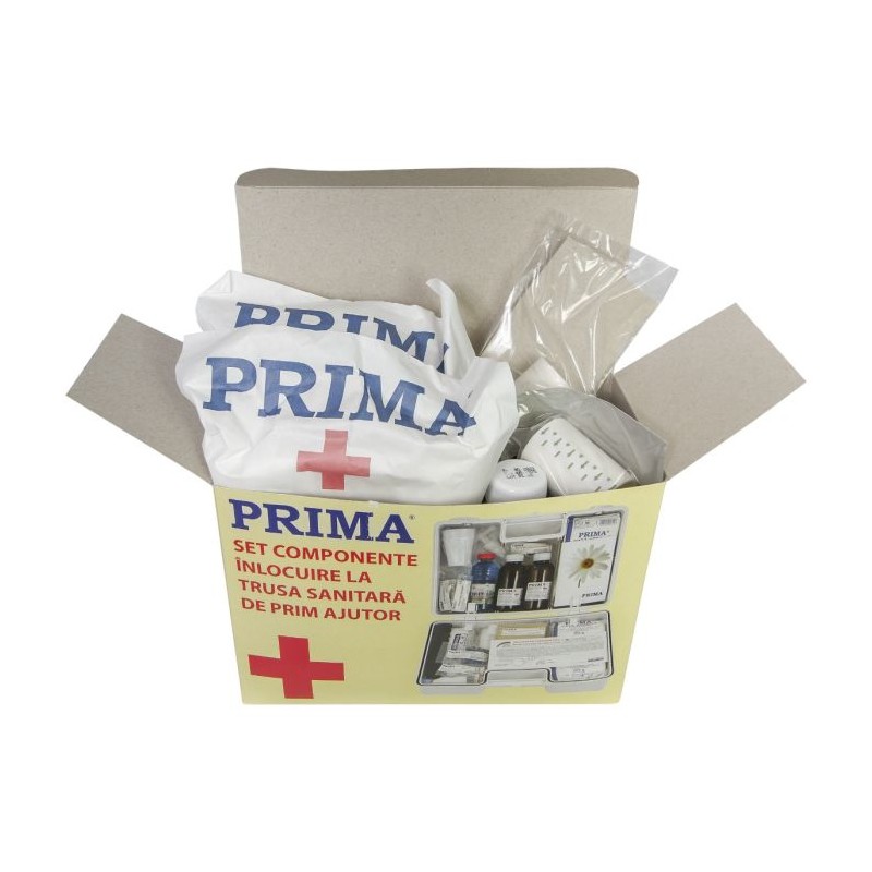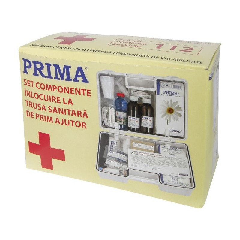 Kitul inlocuieste componentele expirate din trusa sanitara fixa, prelungind termenul de valabilitate. Trusa de prim ajutor va fi bine depozitata si va fi folosita doar atunci cand va fi nevoie. Kitul de inlocuire trusa sanitara fixa are urmatoarele componente:
