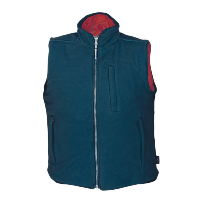 O faţă cu strat impermeabil iar cealaltă din fibre de poliester, fleece şi nylon. Buzunare practice pe ambele feţe.